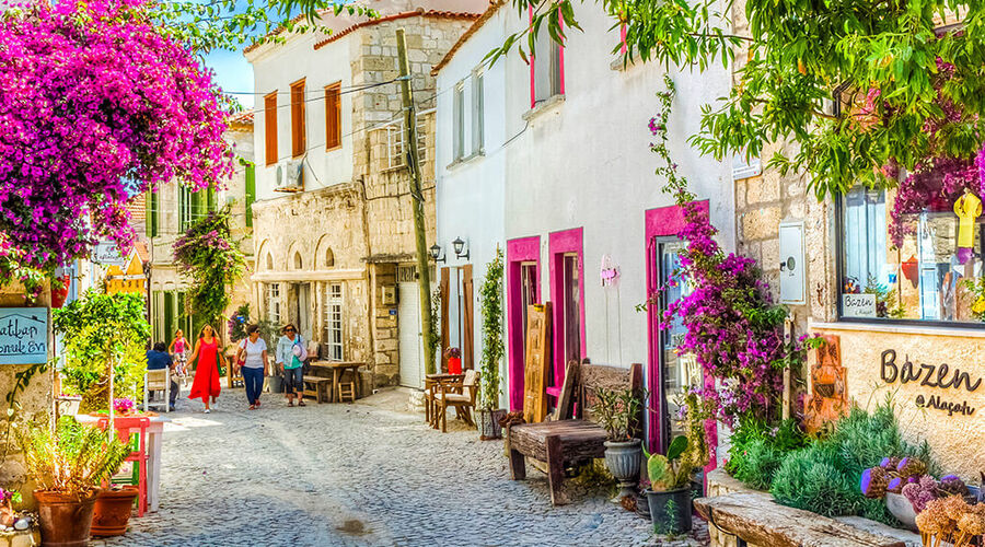 Cunda merkezine ulaştığımızda, Arnavut kaldırımlı dar sokakları, eski Rum evleri ve rengarenk kafeleriyle büyüleyici bir yer olan bu şirin adayı geziyoruz. Koç Ailesi tarafından restore edilerek, İstanbul ve Ankara’daki Rahmi Koç Müzeleri’nin devamı niteliğinde, içinde oyuncaklar ve antika arabaların bulunduğu bir müzeye çevrilen Taksiyarhis Kilisesini de ziyaret edebilir, enfes balık ve mezelerden veya çıtır bir Ayvalık tostundan yiyebilir, sahilde yürüyüş yapabilirsiniz. 150 yıllık Taş Kahve’de muhteşem deniz manzarasında kahvelerinizi yudumlayabilir, meşhur lokma tatlısından tadabilirsiniz.